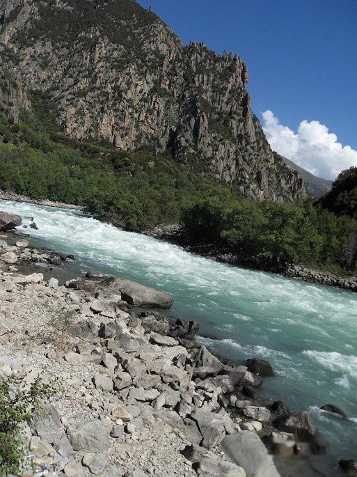 河水给人感觉又是另外一种意境:清澈透白!尼洋河发源于米拉山,尼洋河被誉为林芝地区的母亲河。尼洋河流经工布江达县,再经过林芝流入雅鲁藏布江大峡谷,然后经过尼泊尔流入印度。