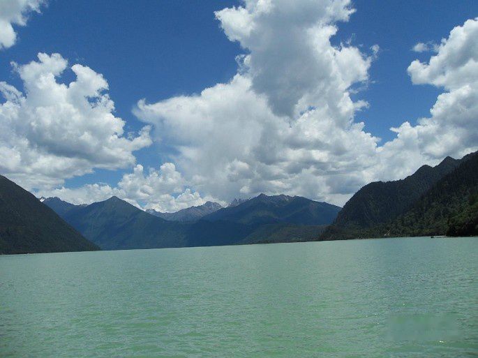 巴松错湖水一般般,不算十分清但是在蓝天白云以及四周群山的衬托下则显得非常的美!