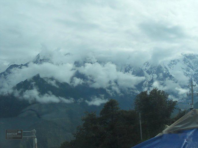 在雅鲁藏布江风景区里,有一处是可以看见南迦巴瓦峰的山峰,不过得靠运气。天气好时,导游说你可以见着真容,天气一般时可见其像女性胸部,天气不好则完全看不见。