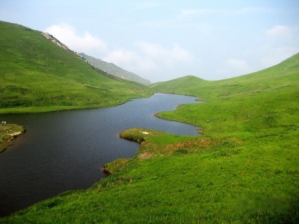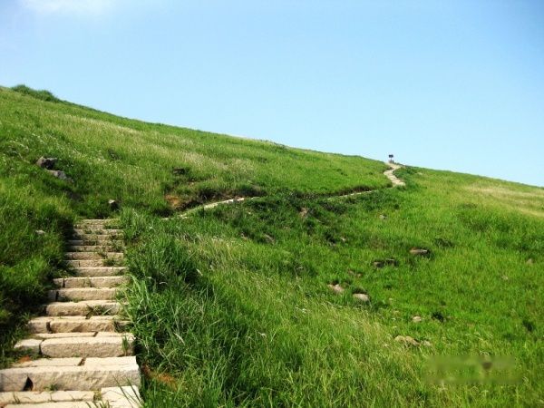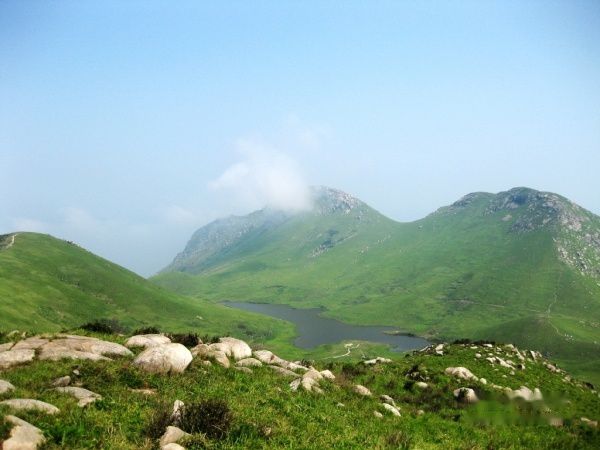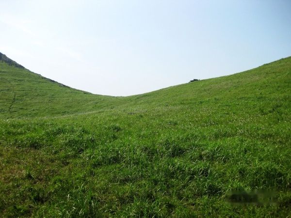 在大天湖没有再做停留,文波同学带着我们直奔小天湖和万亩草场方向。一路翻山越岭,当站到顶上时往下看,这才真正看到了嵛山岛的绝妙景色,一山之隔,却是两样风景,那边风景稀松平常,这头近处绿草绵绵,远处海天一色,连延的山脉,带着那着很单纯的绿,静静的伫立在天空里,伫立在海里。美的象那张WINDOWS的桌面,明明是一个海岛,却拥有这么大片大片的草地。特别是远处那山坡的绿,那种绿色远远地看过去象打磨处理般的特别光滑。很单调,很干净,象一幅伸手可触及的风景画一样,就这么整个放大到你的眼里。
