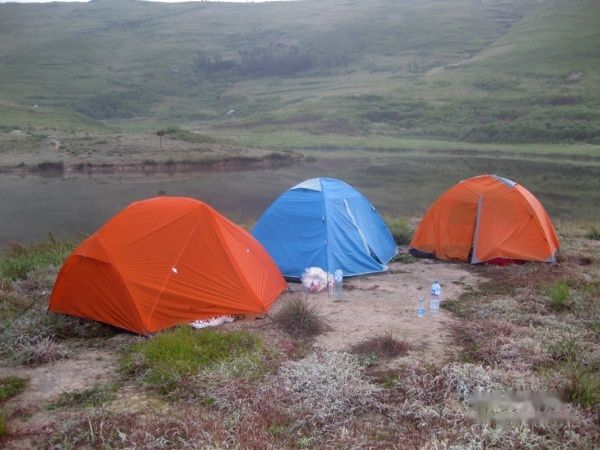 车到了大天湖景区,下车后眼光匆匆巡视一番,挺失望的,不甚宽广的水面,不甚有特色的植被和小山坡,整一个平平常常的水库嘛。湖边有一些木板片架起来的露营区,已经有三三两两的帐篷散落的搭在空地上。难道这就是那个传说中最美的十大海岛?