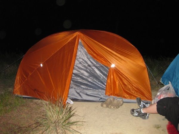 三顶帐篷都是文波同学帮忙搭的,我这是头次露营,一旁打个下手,顺便学习了一下怎么搭架子、钉地钉、放气垫什么的。现在的户外用品设计的还是挺方便。还有他让我带的拖鞋也很好用,晚上在营地进进出出的方便。简单洗漱完,大家分头入帐,枕头一片蛙声入睡。