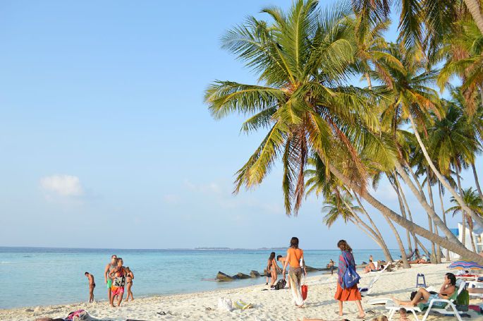 4、游玩:在马代,不需要急急忙忙,不需要好好计划,来到这儿,你就悠着点吧,早上早早起来,看个日出,在酒店门口的沙地上吃个美味的早餐,将各种酱料、饮料品尝一遍,然后沿着海岸散步一圈,回来后更衣涂抹,准备出海。海上疯狂后,回到酒店洗洗刷刷,睡上一觉。到了傍晚,漫步到海边,在海滩上一边吃晚餐,一边观日落。当太阳完全不见了,月上椰树头,此时桌上燃起蜡烛,点点烛光,盈盈海水,窃窃私语,一个浪漫而温馨的夜晚,将会令你终身难忘哦!