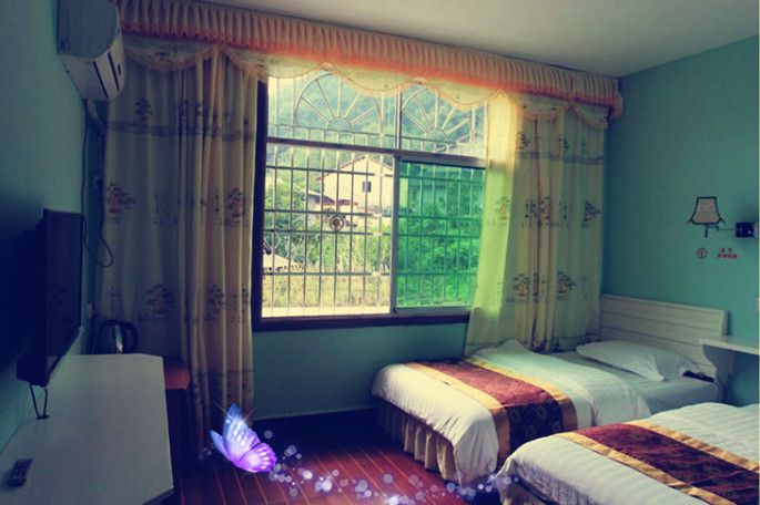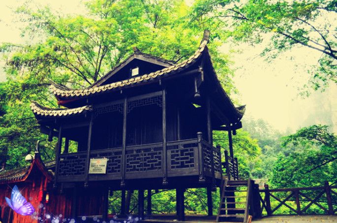 我们9点钟准时坐上第一班开往张家界风景区的中型汽车,每人15元。10点钟左右,我们到达天子山的售票入口,办好购票手续后就继续坐车,坐景区里面的免费环保汽车,直接到达我们住宿的地方,一个靠近乌龙寨景点入口的山中农家旅馆。其实,我们吃完早餐后,天就开始下起雨来了,一直下,正为我们今天的行程郁闷着的时候,往车窗外面一看,便被眼前的景色迷住了。高高而连绵不断的山腰间,萦绕着一缕白色雨带,人间美景犹如天上仙境;山路弯弯,处处望去都是绝地而起的山林,大雨绵绵,为壮丽的大河江山增添几分柔情和娇美。下着暴雨的山里变得很冷,好心的老板娘借衣服给我们保暖,冲完热水澡之后便决定今天要躺在床上好好休息,也许是错过了一天美好的时光,但也让我们养精蓄锐来为接下来的紧密行程作准备。