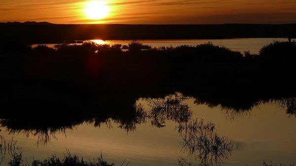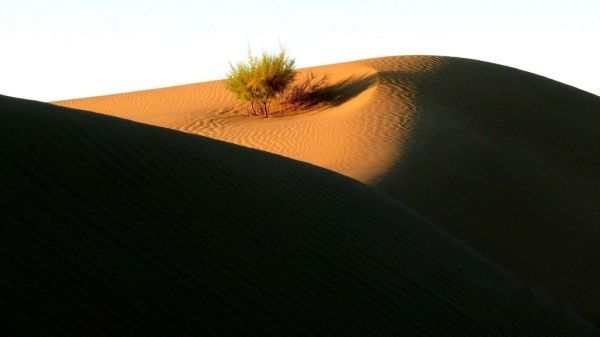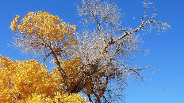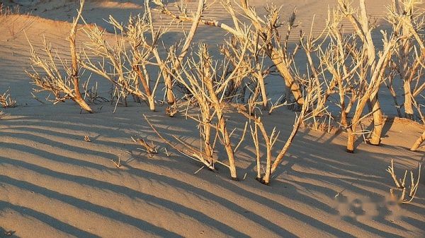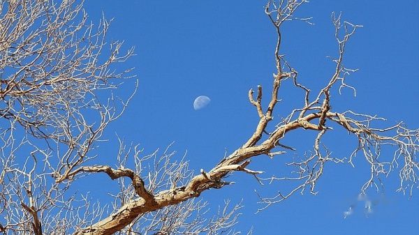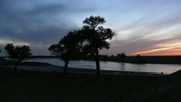 额济纳的气候非常干燥,全年降雨量只有几十毫米,昼夜温差很大,白天万里无云,常常还出现日月同辉的天象,正午的太阳晒得你只能着夏秋单服,但早晚你却要冬装在身。这一点我们还是心理准备不足。凌晨5:30分,乌拉载上我们直奔北线的居延海去看日出〔门票每人20元〕,到湖边后,寒气逼人,晨风刺骨。许多游客已在此等候欣赏和拍摄日出。当太阳从湖平面徐徐升起的时刻,彩霞倒映湖中,大片的芦苇丛被映出金色的轮廓,水鸟翻飞,水天一色,生机勃勃的壮美画卷立即呈现在大家面前。领略湖光水色后,我们一路回返,在行至“策克嗄查水泥路”牌进去约几十米处有一片胡杨林,下车一看,美得惊艳:高高的胡杨林,被太阳映得更加金黄,每一棵都枝繁叶茂、生机勃发、姿态万千,干枯的胡杨枝被编成一道道木围栏,显得古朴而又充满生活情调,虽然没有看见牧民、羊群和饮烟,但我完全相信,这就是我心中想往的世外桃源!后来几天的胡杨之旅也证明,无论是哪一处的胡杨林都无法取代我对这片胡杨林的感怀和激动,她的美艳令我陶醉。怀着依依不舍,我们继续前行。不一会,来到了“神树”景点〔门票每人10元〕,从围栏外看,神树还是绿叶,去过的朋友都说不值一看,我们也就没有进去了。中午返回达镇午餐和休息。13:10分,我们折返南线游。乌拉首先驱车带我们来到东河大桥〔满水桥〕西岸一侧的河岸边,叫我们沿岸欣赏胡杨。这是一片不收费的胡杨景区,胡杨林古木参天,枝干粗大,造型丰富生动,很值得欣赏和拍摄。接下来,我们去了黑城、红城子和怪树林〔三处通票每人60元〕。黑城和红城子都是文物古迹,怪树林是一大片枯死的、造型各异的胡杨枝干。漫步其中,你将感受大漠英雄树的不屈和悲壮。在怪树林我们拍了日落,然后再到东河大桥畔拍夕照,19:45分返回达镇。