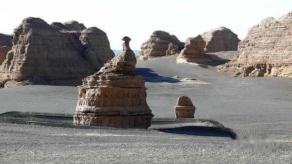 早晨6:30分,完全新面孔的旅游团一行10人又开始一天的旅程。先后参观了敦煌雅丹国家地质公园〔门票每人70元〕、汉长城和玉门关遗址〔连票每人40元〕、阳关博物馆〔门票每人50元〕,全天都在荒漠中行驶,没有考虑午餐,也无处就餐。18点过返回酒店。