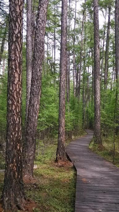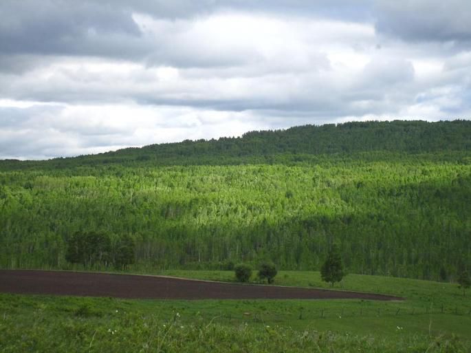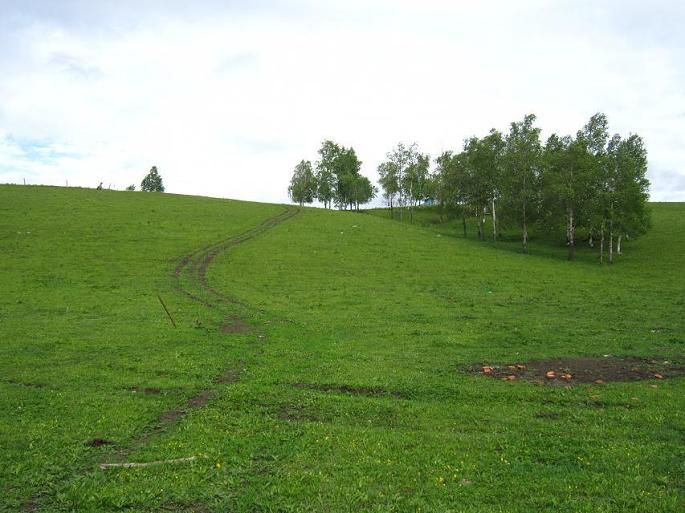 出了莫尔道嘎,雨就开始淅淅沥沥地下了起来,越来越大。到了四队,车在湿漉漉的草地上打滑,完全开不上山,湿地就在不远处,既已来到,不能让这个雨断了想看湿地的念。我下了车冒着雨直奔上山。