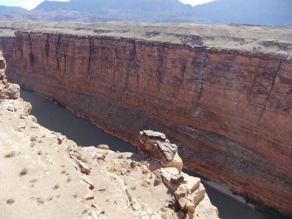 被大坝驯服的科罗拉多河几乎看不出水的流动,再往下不远就是马蹄湾