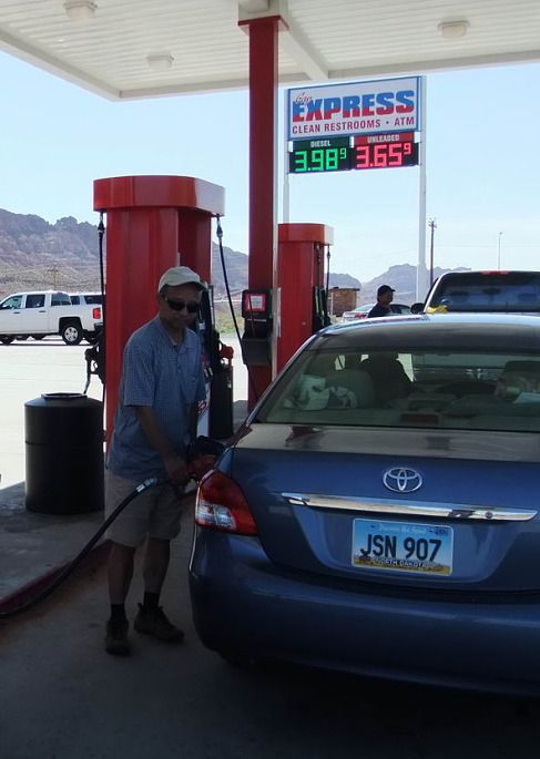 加好油,我们上了新修的20号公路,但没开出多远,柏油路变成了碎石路,路上有压路机正在施工,我们没有停留,继续向前。开了不到3英里,就被工程车拦住了,说我们的车不能走这条路,只有越野车才能过去,还说我们超速了。表妹和表侄女请求了半天,还是坚决不行,并说我们如果去佩吉,只能回到cap镇,先走160公路,再到89公路。可是如果这样走我们就要多走100多英里!