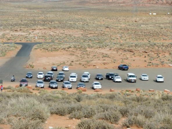 我们到佩吉小镇后先找住处,住进了motel 6(108.47美元)。放好东西开车去马蹄湾。马蹄湾离佩吉小镇只有两三英里,不一会儿就到了马蹄湾的停车场