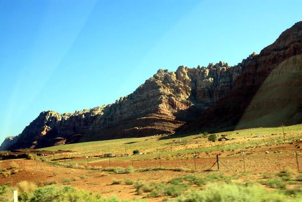 回到公路继续向前,无意中看了一眼指南针,不对呀,去佩吉应该往北走,我们怎么是向南。赶紧停车问路,结果才知道应该往回返,到cap小镇后走新修的20号公路。于是调转车头往回走,又问了几次路终于到了cap 小镇