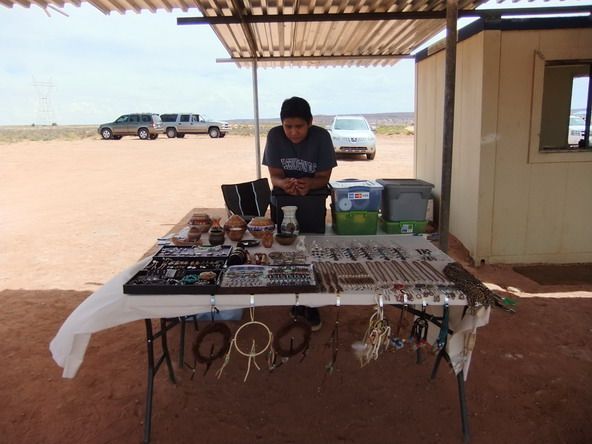 售票处旁有纳瓦霍人卖工艺品的小摊