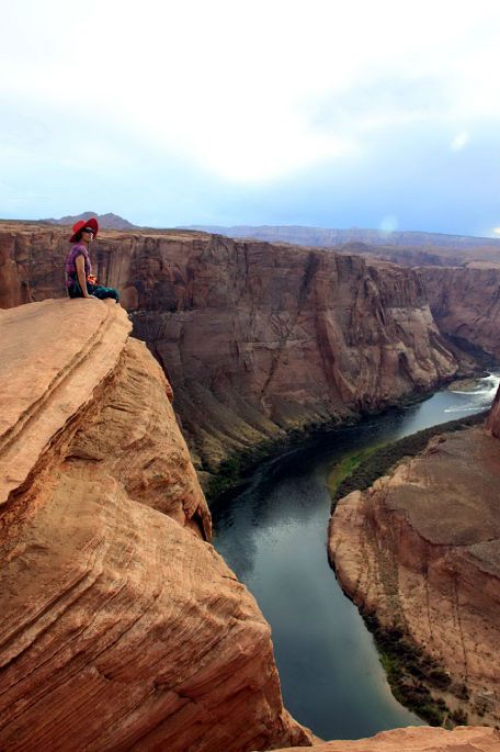 悬崖下,绿色的科罗拉多河围绕着红色的马蹄状岩石,蜿蜒流淌出270度的转角,平静而威严