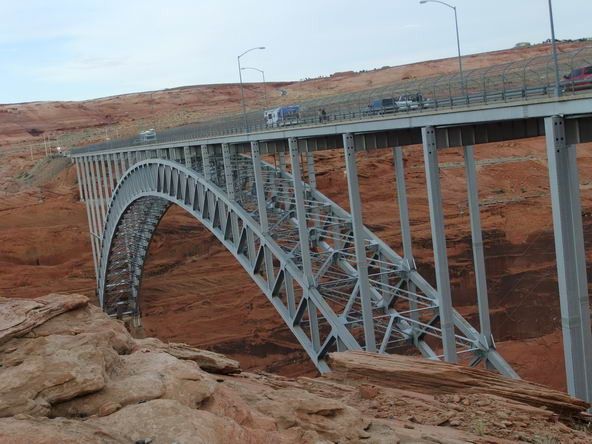 当时我以为是科罗拉多大桥,直到回来写这篇游记按照上面桥的名字查了资料才知道,原来是纳瓦霍大桥!