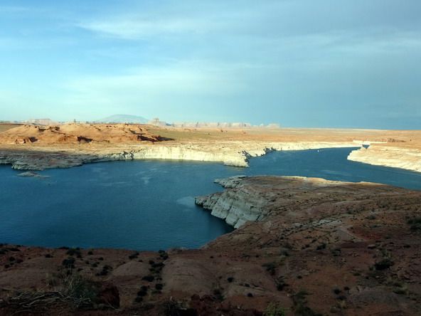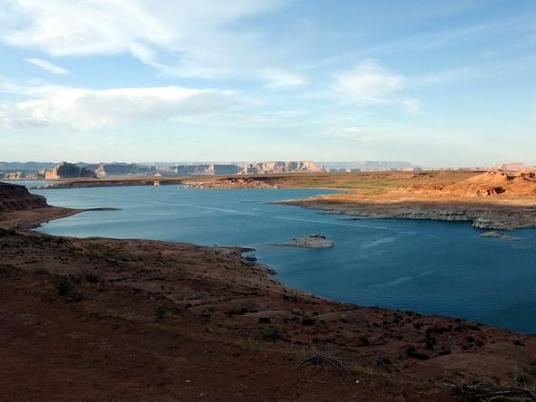 然而美国政府决心已定,为了获得佩吉这块土地,特意在其他地区划出了大片土地给纳瓦霍人,借此作为交换。1957年,成千上万的工人怀揣梦想,提上行李,组建“西进”大军,深入到沙漠的中央地带去投身水坝工程,花费近10年时间,于1966年硬生生地截断了科罗拉多河,修建起全美第二大水坝——格兰水坝,同时也创造出全美第二大人工湖——鲍威尔湖。而美丽的格兰峡谷则从此沉进湖中,只有部分岩柱的顶端冒出水面,变成了湖心小岛。