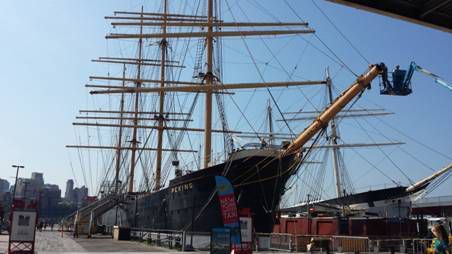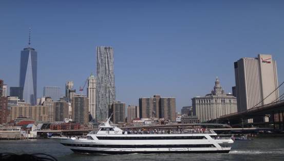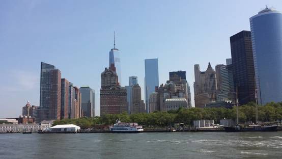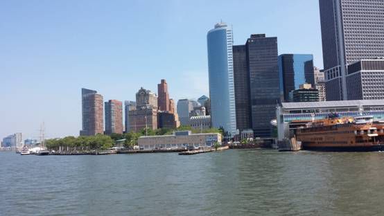 真正的观光游从今天开始。上午先来到南街码头,坐船沿哈德逊河口南行,从船上眺望自由女神像以及曼哈顿的摩天大楼们。来来来,要上图了。