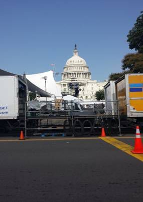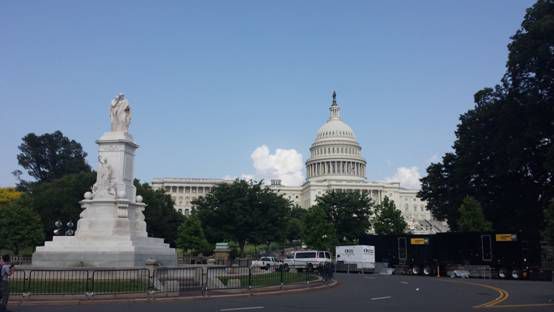 对,就是这个白堡堡,它不叫白宫哦。因为去的时候正好是国庆前一天,所以正在摆台子,彩排国庆日的音乐。
