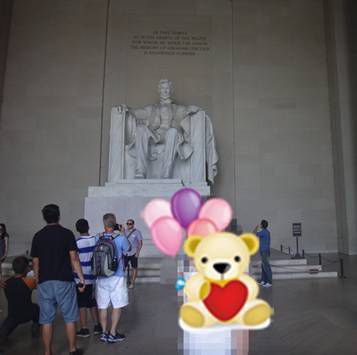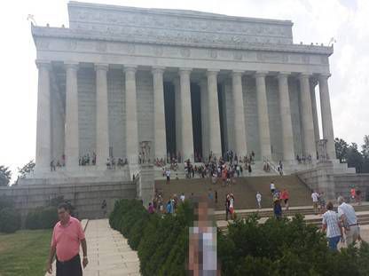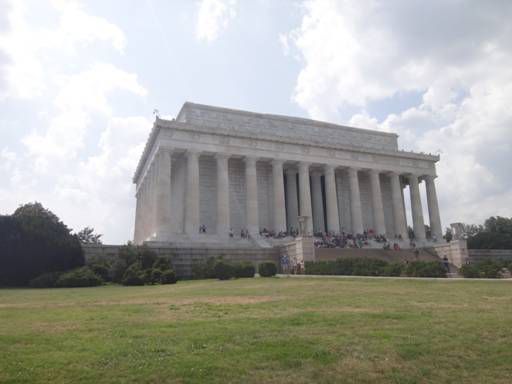 远远看上去还是很壮观的,不过一进去瞬间变三的场景就浮现了,还有小时候看的《博物馆奇妙夜》神马的。门口台阶上坐了好多人,小风吹着很凉快,坐着待一个下午我觉得还真是挺惬意。纪念堂的地下有洗手间,也有可以喝水的地方(在这儿提一句,美国所有的自来水都是可以饮用的,他们很少烧开水喝,我们想要喝开水的就只能拿酒店里的咖啡机凑活烧啦),下面还有一个小型展览馆,主要讲述林肯的事迹。长得很像毛主席纪念堂。。。