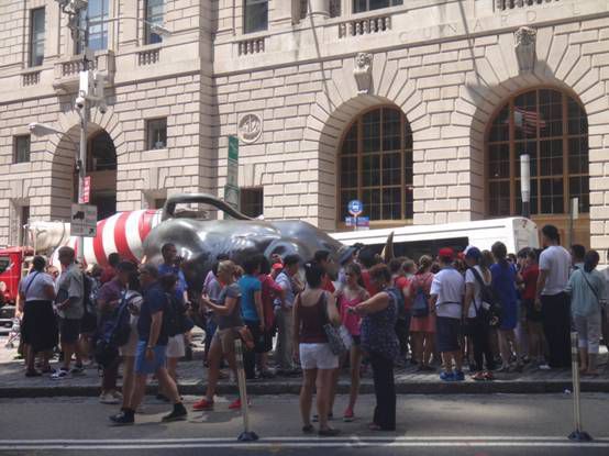 去华尔街当然要看铜牛啦。对,没错,就是那个淹没在人群之中的那只牛。