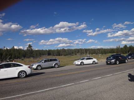 黄石内也有很多当地的美国人开车过来度周末的~看,云多低。