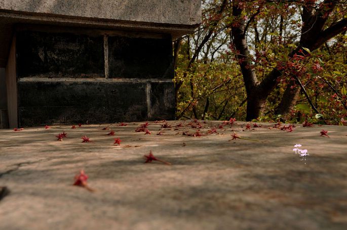 树上的残樱,地上的残瓣,怎么看都觉得可惜。