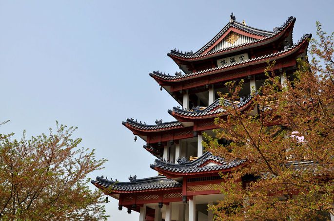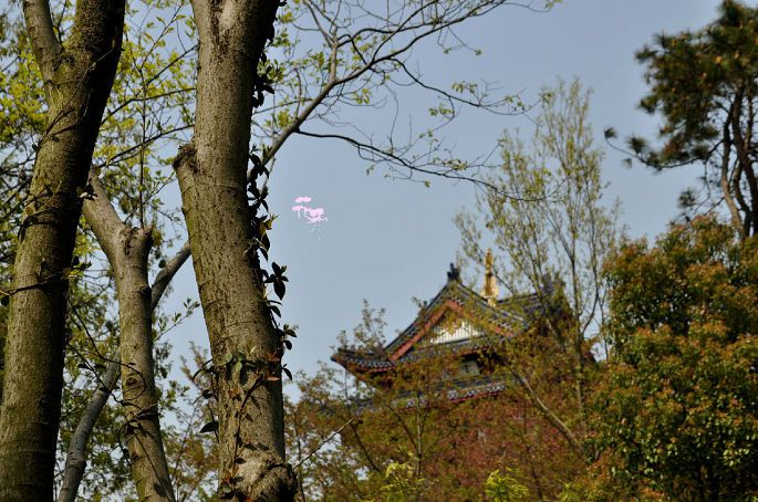 赏樱楼,但是就算登上去了,也只能看到没有了樱花的樱花树,本来应该是一片片白色如云彩一般的,煞是可惜。