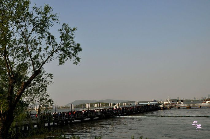 常常的**是等待上船的人,这么长的队真的都是人啊,旅游季果然彰显了我国强大的人力资源。但是基本上一艘游船就坐上了这么多人,坐游船是凭门票免费的。