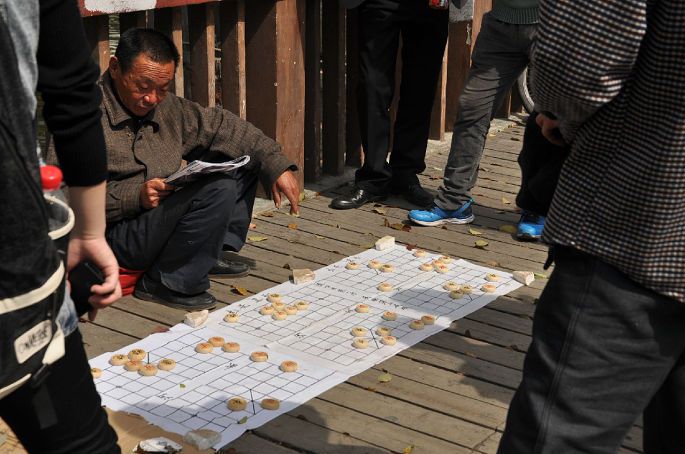 在去南长街的路上看到了摆局的老人,老人的样子自信满满,但好像传闻说这种棋都没法赢是不是?