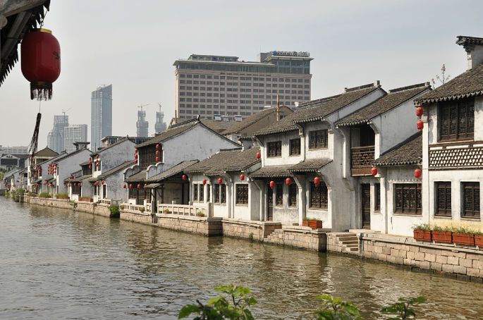 无锡古运河的一段。南长街就是沿着古运河的一条街,由以前的房子重新装修,赋予了时代的新气味。