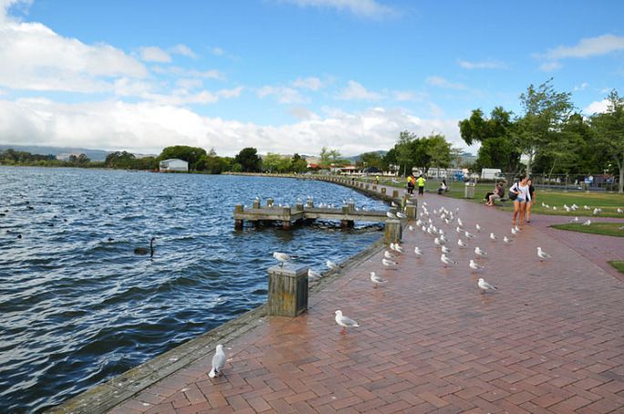 2月22日,早上9点用餐,10点出发去爱哥顿牧场参观。它始建于1971年,占地350英亩,是一家经营良好的五星级牧场。同时兼具旅游观赏功能。在这里可以看到新西兰完整的动物种类,还可以与动物亲密接触。听解说员说新西兰的牧场均为天然放牧饲养,牧草不施任何化肥,饲料无任何污染,奶制品百分百绿色环保,新西兰也是世界上唯一没有疯牛病的国家。进入牧场后乘坐特别改制的大拖车进入里面,每到一种动物圈养区内时都会停下车让游客近距离和动物接触,特别在羊圈內游客可下车用食物亲手喂食它。一路上看见了奶牛、绵羊、驼羊、鹿、野猪、火鸡和野鸭,牧场内还种植了不少奇异果,大家还品尝了奇异果密。出牧场后回到原来的饭店用午餐,餐后去红森林公园。途中小王导游说公司来电,要他去一家厂拿一条羊毛被,问大家是否同意,时间不会超过10分钟,大家表示沒意见。就这样大家进了一家驼羊毛加工的企业,实际上这就是一家羊毛制品购物店。经推销员一介绍,团內又有人就购买了羊毛制品,出了这家企业后我们才去红森林公园。红森林公园内种植了170多种不同的树木,新西兰人希望能够验证出哪里种树能够最适应新西兰,尤其是罗托鲁阿这个地热资源丰富的地区。在这170多种树中,最后有三分之一的种类存活下来。现在红木森林也是人们散步,或者是进行山地自行车锻炼的好地方。那里的树木粗大挺拔,中间尤为一棵七姐妹松最为奇特,它们同生长在一棵倒地的红松树上。大家在那棵树上拍了不少照片,我俩当然也不例外了。可能是时间还早,小王带我们去了一个湖泊,据说是新西兰第二大湖泊,罗托鲁亚湖。在湖边的草坪上,正在举行演奏比赛,很多当地人坐在草地上观看。我俩在湖边拍了些照片,又在草坪上看了会演出,3点左右乘车返回奥克兰,用完晚餐后回酒店休息。