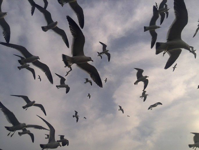 起来后又到顶上夹板,见漫天海鸟翻飞鸣叫,混着人们的惊喜与欢呼,真是开了眼了