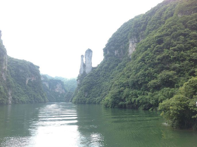 D.玩:镇远有个青龙洞,由于我们天河潭景区玩过水旱洞了,溶洞其实都一样,就没去了。我们去玩了舞阳河景区。旅舍老板帮忙牵线,我们订的是船票100元/每人,来回车费20元/每人,共120元/每人,从侧门即一个简陋的码头上船的(来回有车接的)。舞阳河景区又是一个山里的景区,从旅舍到景区单程就得30分钟左右,然后乘游船大概游两个小时。景区倒也山葱郁水碧绿,倒映着湛蓝的天,很是怡人。至于什么孔雀开屏、姜太公钓鱼等,就是你听着介绍,然后仁者见仁智者见智了。也有小小的瀑布,看过黄果树的瀑布,你就会觉得那叫水流而不是瀑布了。我们剩下的时间就是逛古镇的古街,逛了两次,哈。对了,古镇有个半山亭,在一个公园内,六点后不收门票,可以去爬那个半山亭,感受下一览众山小的景致,下来后绝对多吃一碗饭。哈。。。还有个高放河,听说可漂流,水流较急,我们就没去了,感兴趣的可以去下。至于铁溪景区,我们最终没去,要徒步走两三个小时,那就算了。