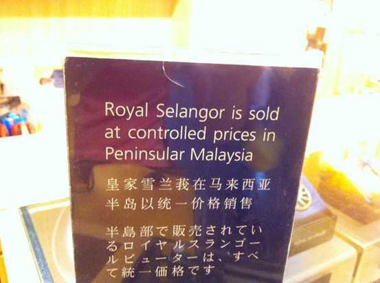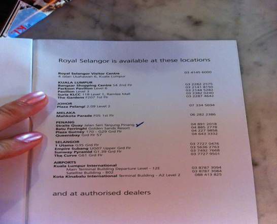吃罢午饭,迎着骄阳,走到中央市场,准备淘点货。逛来逛去最终把目光锁定在了Royal Selangor这家锡品牌店,一来觉得连锁店要靠谱些,价格统一透明,二来无论从重量,雕刻技艺和色泽等角度来看,都要比外面的普通小店的好。