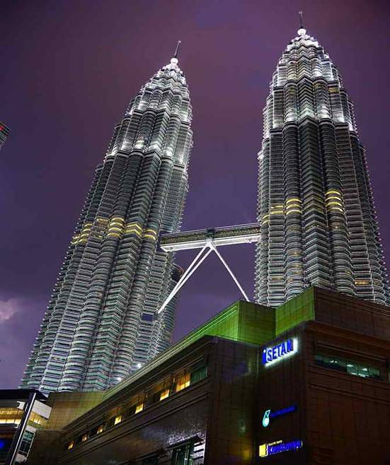 石油双子塔坐落于吉隆坡市东北部,曾经是世界最高的摩天大楼,直到2003年10月17日被台北101超越,但仍是目前世界最高的双塔楼,也是世界第四高的大楼。这座美轮美奂的建筑物的建筑理念是由伊斯兰5大支柱思想所激发而来的。它是吉隆坡最经典的一座超现代的建筑物,也是游客从云端俯视吉隆坡的好地方。