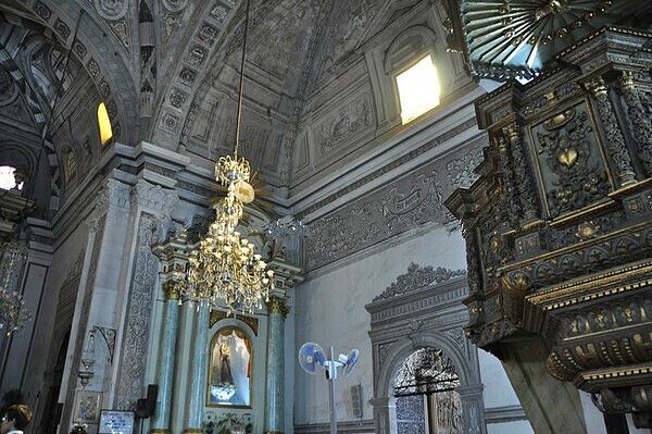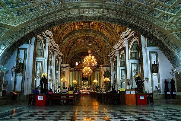 从马尼拉大教堂一直往前走,经过一些小旅馆和纪念品商店就来到奥古斯丁大教堂。教堂全部用古老的石块砌成,内部华丽的灯饰把整个教堂映衬得典雅高贵。