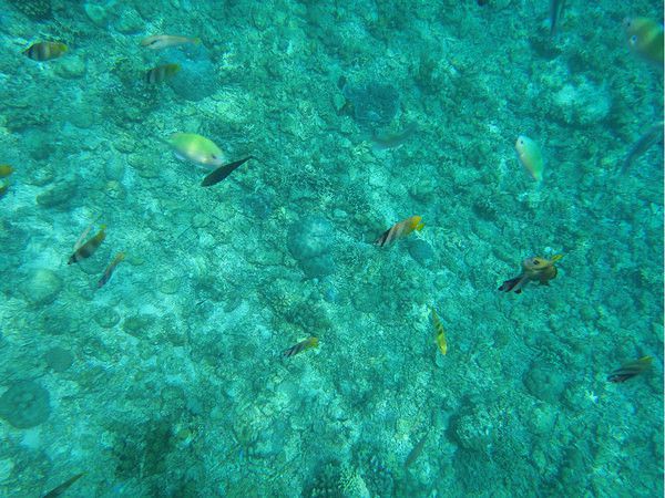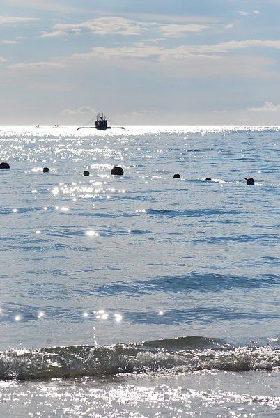 这里的大海临近赤道,阳光直射那叫一个强烈,真想好好的欣赏一下这样的海景,可惜刺眼的阳光让我的眼睛都快睁不开了,剔透的海水在阳光直射下波光粼粼,连远处的小船都成了一个个的剪影。