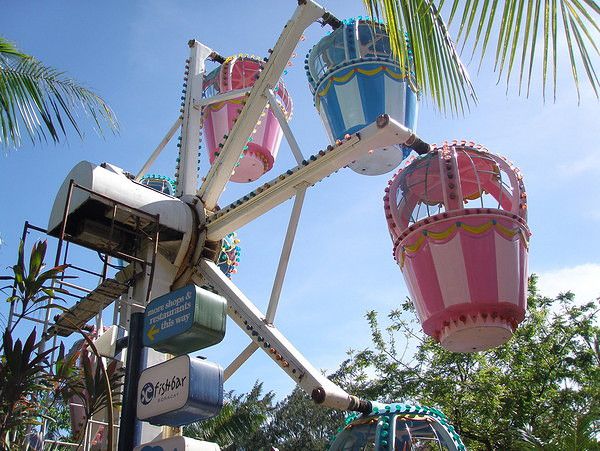 这是D-MALL里面的标志性迷你摩天轮,很可爱很迷你。到了晚上要是天气好的话,还有人在那里画素描。