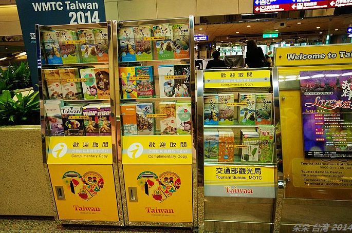 取行李,过了台湾的安检,在许可证上盖了一个入境章,进入台湾就可以看到这个可以拍照留念的橱窗。