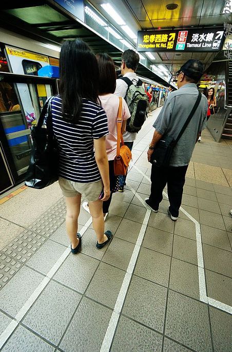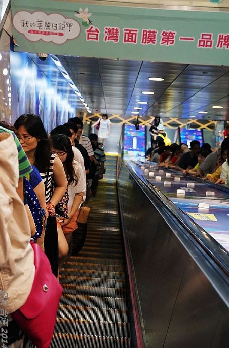 台湾人都很讲秩序哦,他们无论干什么都会自觉地排队,坐扶梯时大家都靠着右边站着,把左边留出来让给赶时间的人走。回来以后我观察到重庆的地铁和轻轨站的扶梯也有“靠右站立,左侧通行”的标志,为什么人们都不遵守呢?