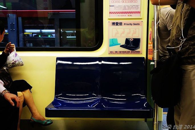 在捷运和公交车里,都有为残疾人、老年人、带着小孩或者怀着小孩的妈妈准备的博爱座,在捷运里的博爱座是深蓝色的,而且其他座位是浅蓝色的,无论车厢里有多挤,不是需要它的人,都不会去坐那个博爱座,老爸说,如果随便去坐那个位子的话,会被人鄙视的哟。