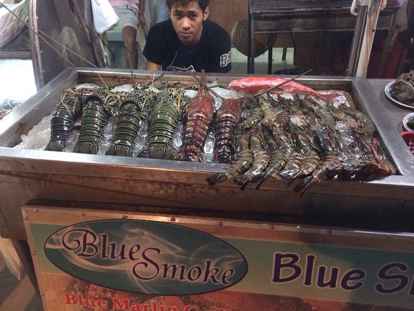 进入海鲜市场就开始挑食材。 很多都是新鲜的。不过据说这边其实对游客和当地人都已经有一个价格了,所以砍价只是砍去里面的水分。 不过我个人觉得,不管价格怎么样, 能体验和享受砍价的乐趣也还是不错的。第一天由于身上现金不够了。 没买龙虾,买了几个蟹,石斑鱼,鸡肉等。。。 决定明天取钱再来吃一次。本来准备选择福建人在长滩或者是香港厨房的, 但是那边人态度真不怎么样。而且价格比其他地方普遍都高, 所以决定放弃, 最后选择了这家同样网上推荐的店, 就在海鲜市场门口, 很好找