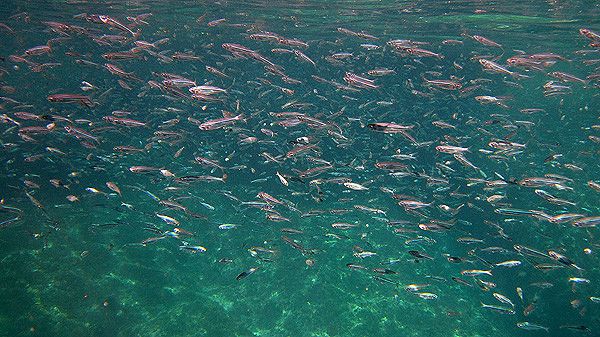 Ariel's Point之所以能跳海,是因为离岸边不远就是个大深沟,浅水的地方可以浮潜,彩色的鱼不多,都是这种一大片一大片的亮晶晶。