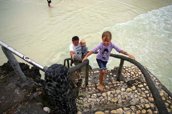 正好退潮,很多人都爬上来一看究竟,跟着我上来了一对萌爆的小姐弟,不知道是哪个国家的