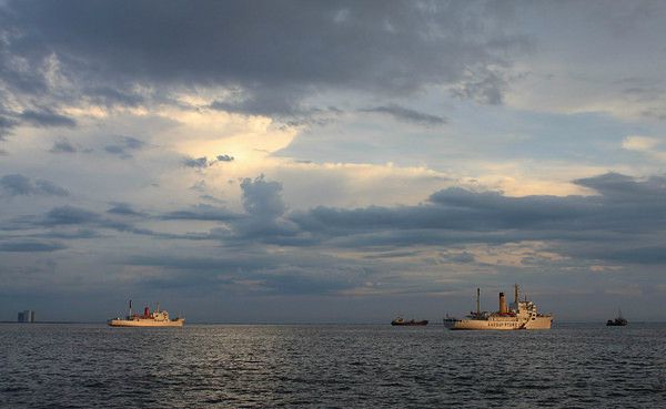 海湾里停着一些游轮,据说其中一艘是有钱人豪赌的去处。