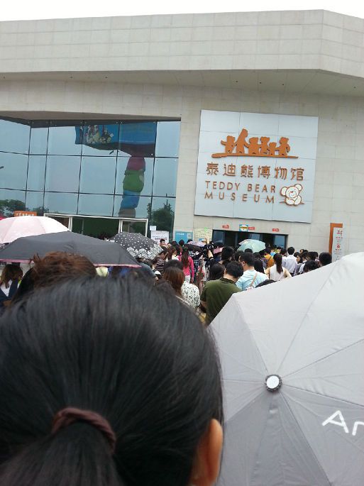 说来也巧,正好赶上某网1元玩景点的活动,毫不犹豫的买了张泰迪熊博物馆的门票,前往游玩。中国泰迪熊博物馆是全球最大的泰迪熊博物馆,位于成都温江金马国际体育城。门票60元每人,优惠价30,1.2米小孩免票。先传一张领票的照片,由于这两天是某网站活动,人气爆棚,排队领票花了两个小时。从成都市区出发可在万家湾公交车站乘坐761到到达。花费门票1*3=3元,公交(1+2)*3=9元,吃饭45元,水4元,共计61元。