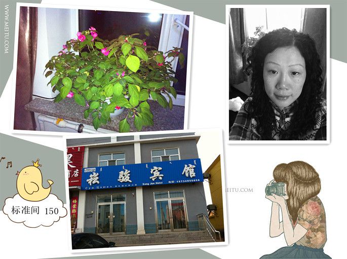 6点多我们到了莫尔道嘎镇,找旅馆入住,甜菜、小铁和飞Girl去比较了两家,我实在懒得动了,她们定好了,我就去付押金(呵呵,我是管钱的哦),每个标间130,电热水器洗澡,第二个人洗到一半变冷水,呜呜。放好行李,步行到斜对过的姐妹酒家就餐,我中午肉吃多了,一直点的素菜:蒜蓉油麦菜、西芹虾仁炒蘑菇、排骨炖豆角(大家一致首肯),这里的豆角很好的,很宽,肉质也很厚,小铁有点儿冷,大家也都干渴了一天,一小盆疙瘩汤,哇塞,那容器太震撼了,我们只喝了一个盆边的量。