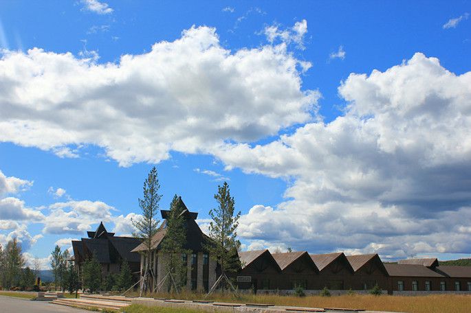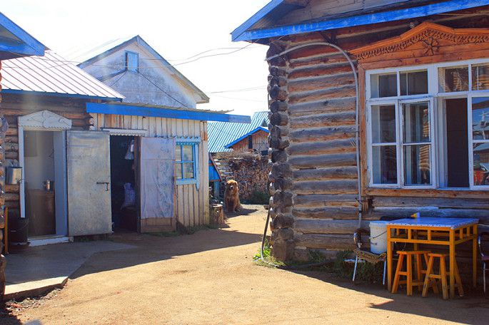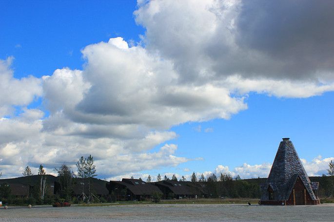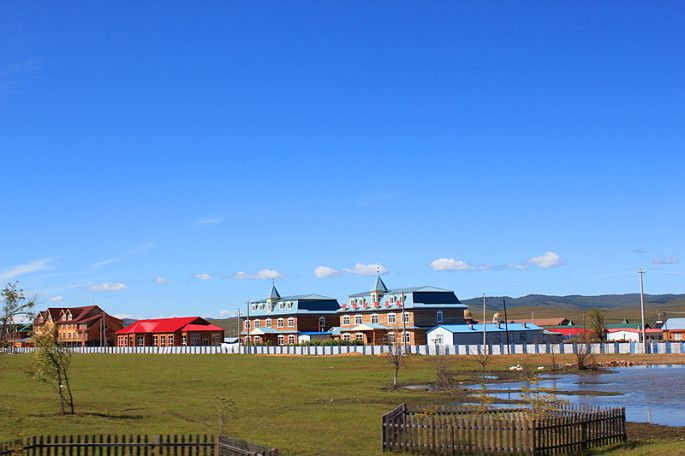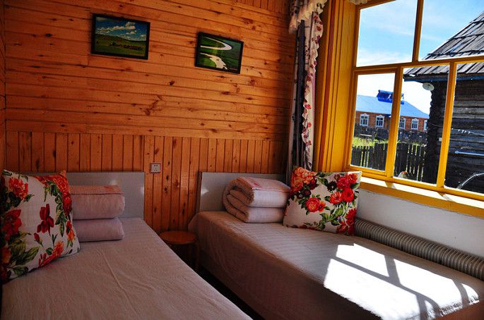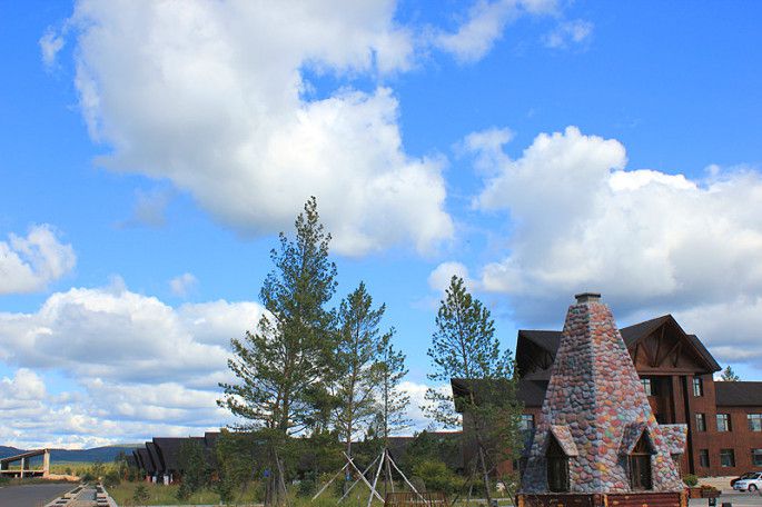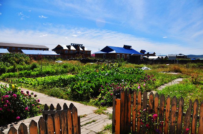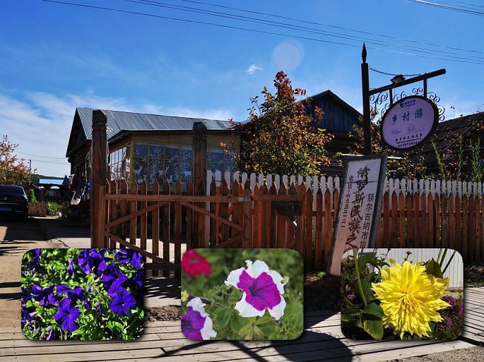 这里的民居很有特色,体现了撮罗子建筑特色,撮罗子就是用木杆搭起的尖顶屋。