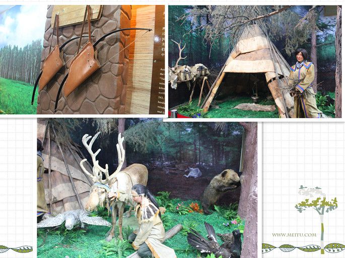 博物馆:敖鲁古雅鄂温克民族博物馆是融教育性、历史性和观赏性为一体,是集展览、文化、休闲等多功能于一身的现代化展厅。博物馆内分布有狩猎文化、桦树皮文化、萨满教文化、兽皮文化、驯鹿文化、北极圈文化6个展厅。在这里可以了解到北方狩猎民族的桦树皮文化及鄂温克猎民传统的民族手工艺品的制作方式。