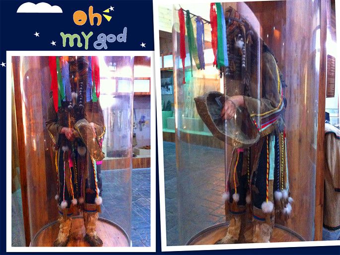 强调一下啊,那个在展柜里面的真人大小的萨满巫师着实吓了我一跳,专心于拍前面展品,猛一回头,哇,太突然了。