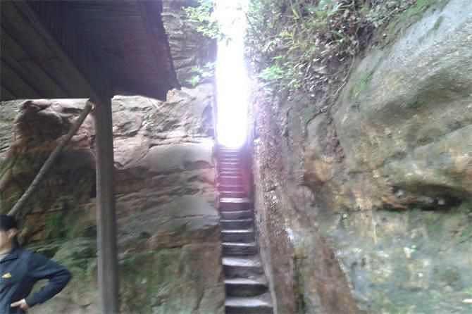 天梯共有九百九十九级台阶,不常爬山的人会觉得望而生畏,许多人爬到中途就放弃了,确实累得够呛。然而,令我惊讶的是我那多病体弱的太太竟然在我的搀扶下也登上了最后一级台阶。的确,站在天梯上,它会激励你勇往直前,义无返顾;它能给人以一股勇气,能给人以一种自信。当你一旦达到目标时,那种自豪感会油然而生,艰难曲折的途径也不过如此。